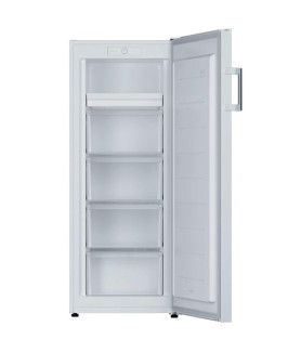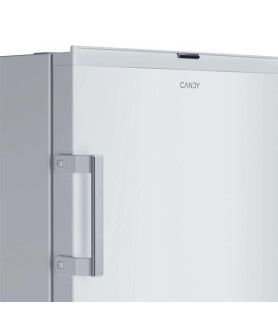 Congélateur armoire Candy CNUQ2L513EWH - Avec ses 169 litres de capacité utile, le congélateur armoire Candy CNUQ2L513EWH est idéal pour stocker les surgelés de toute la famille - Sa technologie Low Frost limite la formation de givre jusqu’à 20% par rapport à un froid statique - Il offre un pouvoir de congélation de 7,7 kg/24h et maintient vos aliments jusqu’à 12 h en cas de coupure de courant - Pensé pour s’adapter aux contraintes d’espace, il est équipé d’une porte réversible et peut être installé dans une pièce non chauffée jusqu’à -15°C - À l’intérieur, 4 tiroirs transparents et 1 clayette en verre facilitent le rangement des produits - Il ne dispose pas d’éclairage mais embarque une régulation mécanique simple à utiliser - Compact et pratique, il affiche des dimensions de 138 x 54,5 x 57 cm et un niveau sonore réduit de seulement 38 dB - Avec son design sobre en blanc et sa poignée silver, il se fond dans tous les environnements.