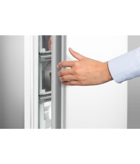 Congélateur armoire No-Frost BluPerformance - Technologie BLUPerformance : pour un fonctionnement silencieux et un encombrement limité, l'intégralité du circuit froid est logé dans le socle. Les performances sont ainsi nettement améliorées avec un volume utile plus important et une consommation énergétique réduite - FrostProtect : fonctionnement performant même dans un local non chauffé non isolé, jusqu'à -15°C - 7 tiroirs -Tiroirs modulables VarioSpace - Fonction SuperFrost automatique - Mode Sabbat - Commandes électroniques internes (sur le top) - Affichage digital tactile - Alarmes visuelles et sonores - Compatible Smart Home avec la SmartDeviceBox en option - Enchassable - Joint de porte amovible - Poignée intégrée EasyOpen.