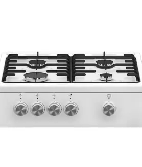 Cuisinière gaz - Four gaz - Mode de cuisson Spécial Pizza - Contre-porte plein verre démontable : la structure ingénieuse de la porte de ce four rend le nettoyage de la vitre encore plus simple. Vous pouvez démonter sans outil la porte et les panneaux de verre pour les nettoyer efficacement des deux côtés - Allumage de la table manuel - 4 brûleurs dont 1 rapide 3 kW - Sécurité gaz par thermocouple - Grilles émaillées - Couvercle en verre - Compartiment de rangement avec abattant.
