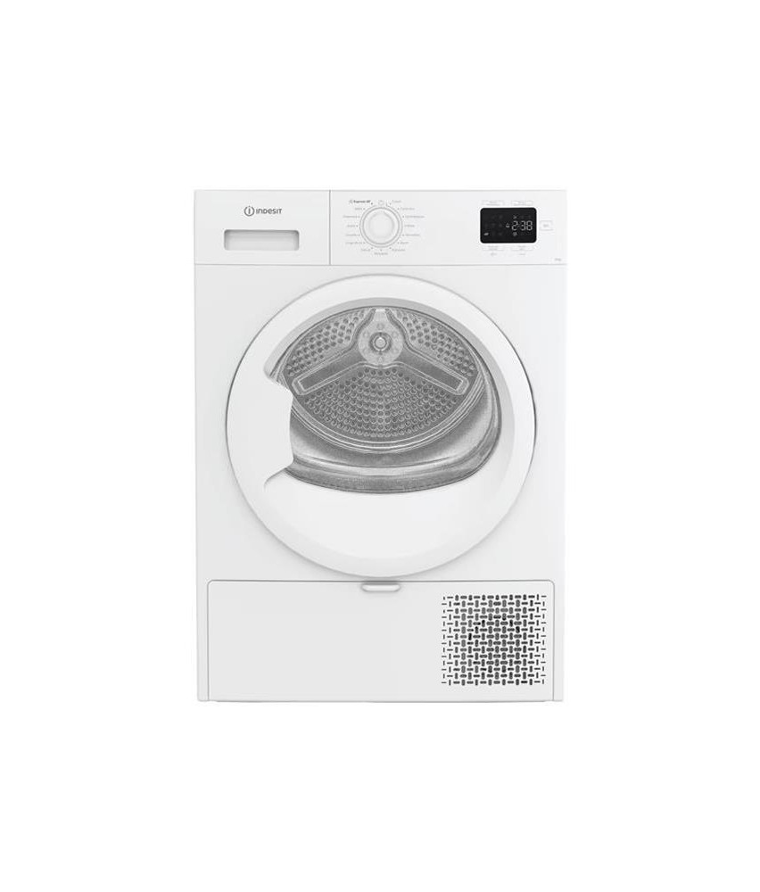 Sèche-linge à pompe à chaleur Indesit CYSD82DWWFR - Conçu pour les foyers à la recherche de performance et de simplicité, il offre une capacité de 8 kg avec un séchage électronique efficace - Ses 15 programmes couvrent l’essentiel : coton, synthétiques, linge délicat, serviettes, linge de lit ou vêtements bébé - Il propose aussi un mode express 30 minutes pour les urgences de dernière minute - Côté options, il intègre un départ différé jusqu’à 24h, le réglage du temps ou du niveau de séchage, une fonction anti-plis et une sonnerie de fin de cycle - Le tambour galvanisé de 92,5 litres préserve les textiles avec soin et s’éclaire pour plus de confort - Les nombreux voyants (filtre, condenseur, réservoir, phases du cycle) permettent un suivi simple et intuitif - Le moteur universel assure une fiabilité au quotidien - Il est également équipé d’un verrouillage enfant pour une utilisation en toute sécurité - Son design blanc compact s’intègre facilement dans toutes les buanderies.