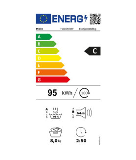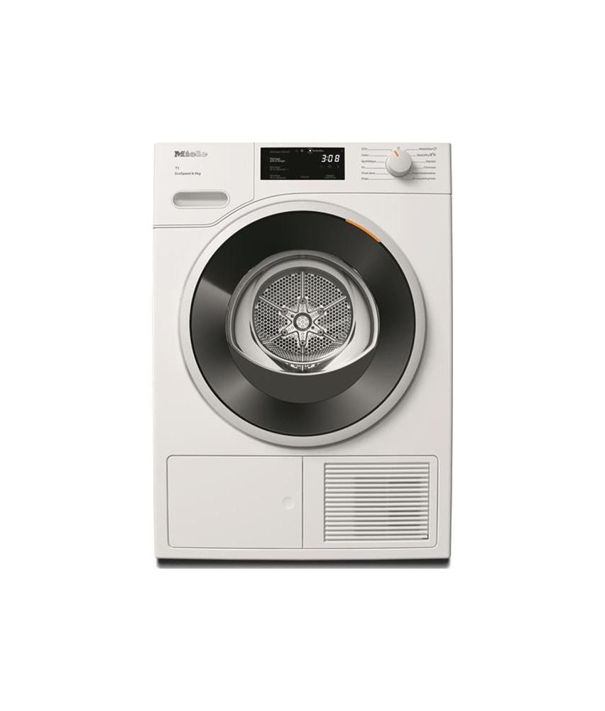 Sèche-linge pompe à chaleur Miele TWC 640 WP - Profitez d’un séchage optimal et respectueux du linge grâce à sa capacité de 8 kg et son séchage électronique qui ajuste précisément le cycle en fonction du taux d’humidité - Avec ses 10 programmes, il s’adapte à tous vos textiles, y compris les plus délicats, et propose 4 niveaux de séchage pour un résultat sur-mesure - Son système PerfectDry assure un séchage homogène et efficace, tandis que la technologie FragranceDos parfume votre linge en toute simplicité - Doté de la fonction AddLoad, il vous permet d’ajouter du linge à tout moment du cycle - Son moteur standard est associé à un tambour Aerogliss 120 L en inox, offrant un soin optimal à votre linge grâce à son effet coussin d’air - Pour plus de praticité, il dispose d’un échangeur thermique sans entretien et d’un kit de vidange de l’eau condensée - Côté sécurité, il est équipé d’un système anti-fuites et d’un verrouillage enfant - Son design moderne avec bandeau incliné à 5°, porte noir obsidien et anneau blanc lotus s’intègre parfaitement à votre intérieur - Réservé aux points de vente agréés MIELE.